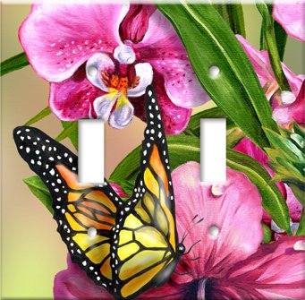 Monarch & Flowers Switch Plate - Double Toggle Feature