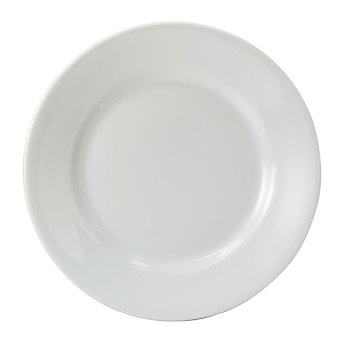 Basic, clean white style that matches your finest china or everyday tableware. Great for keeping on hand as extras for parties, barbecues and surprise guests, the classic dimensions and shape of these plates are simple and functional. Set of 6. Imported. Ceramic. 8" dia.