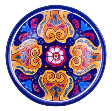 Enjoy this traditional Mexican Talavera Decorative Plate in an original bright-colored designed as only MX Imports can bring you. The piece is for decoration only and has a string on the back for easy hanging. Please note that our multi-color styles each come in a different color combination. * = All Decorative Plates are only available in our Multi-Color (MCB) style with a blue base. Dimensions: 12.0" X 12.0" X 1.0". The History of Talavera: The striking ceramic known as Talavera is over 800 years old, originating in the Talavera de la Reina region of Spain. At that time, it was called Majolica. Known for its beautiful glaze work, Talavera was imported to Mexico in the 16th century where it was used to decorate monasteries and churches with tiles and religious figures. Talavera is not turned or tin glazed. The pigments are brushed onto raw or unfired glaze. Each piece takes between 12 and 15 days to complete. It must set for 16 to 18 hours before being liquefied and poured into molds. The pieces are then hand polished and fired for six hours at 1500 (F) degrees, then painted and baked again in an 1800 (F) degree oven. Prehispanic Mexican craftsmen blended the majolica process with their own interpretation of the method to work the clays of the region and incorporated their art forms and colors. Their product came to be known as Talavera. More About MX Imports and Our Products: We are happy to pay about 20-25% above 'market' value to our artisans in Mexico in order to create a sustainable business for them as well as in the hopes of bringing up the standard of living of the community at large. We specialize in Mexican Talavera and we stand behind our products with a 100% satisfaction guarantee.
