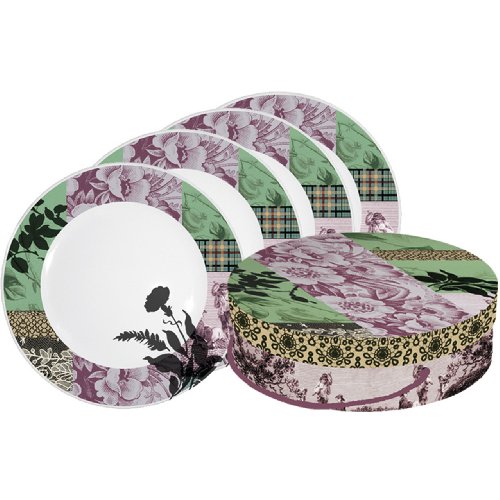 Paperproducts Design Dessert Plate Set features stunning Ireland design by Fringe. Set of 4 porcelain plates are packaged in coordinating round box that is perfect for gift giving or storage. Each mplate measures 8.25 inches round.