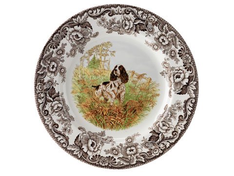 Spode Woodland Hunting Dogs 8-Inch Salad Plate, English Springer Spaniel Feature