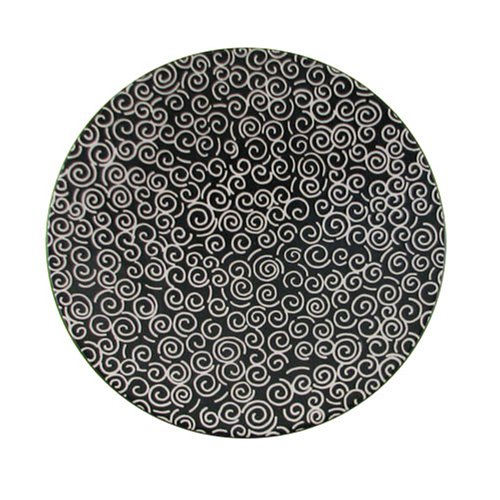Purchased to accompany my other solid matte black dinnerware. They make a fun and slightly whimsical addition to the set table. Also purchased the dip bowls in the collection. They are good quality, lighter weight stoneware and stack well. Was initially concerned that the curl pattern may be difficult to clean but the over-glaze of the slightly depressed curl makes it easy. The salad plates are a great size for bagles in the morning or sandwich at noon. Am seriously considering the soup bowls and the dinner plates, however the is no image of the plates available - pattern all over (my preference) or on edge only? Also have my eye on one of the serving bowls. Good quality, fair price, with free shipping - I'm happy!