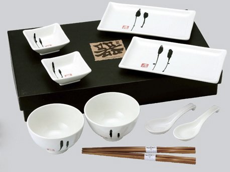 Cheap Japanese Sushi, Wasabi Plates, Bowls & Spoons Set in White & Black Review