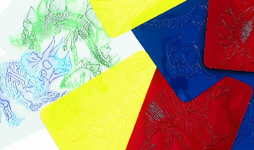This classic activity is still a favorite art experience. Discovering shapes, pictures and designs by placing paper over the embossed, plastic plates and rubbing them with crayons or colored pencils never ceases to thrill children. The plastic rubbing plates make interesting clay impressions as well. Embossed pictures of 6 Prehistoric Skeletons. 7 x 7". Includes idea guide. 6 per package."