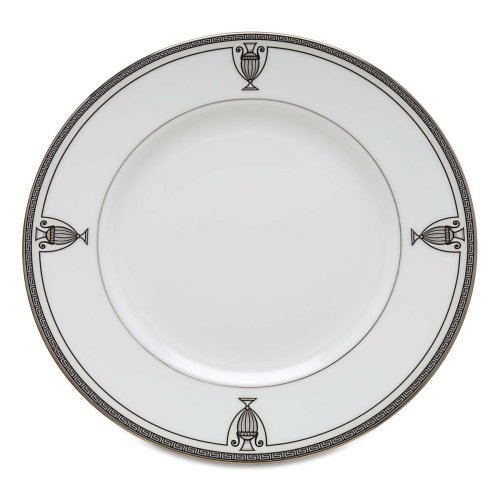 A Greek key pattern encircles this handsome plate just inside its platinum edge. And four decorative urns grace the plate at the 12, 3, 6 and 9 o'clock positions.